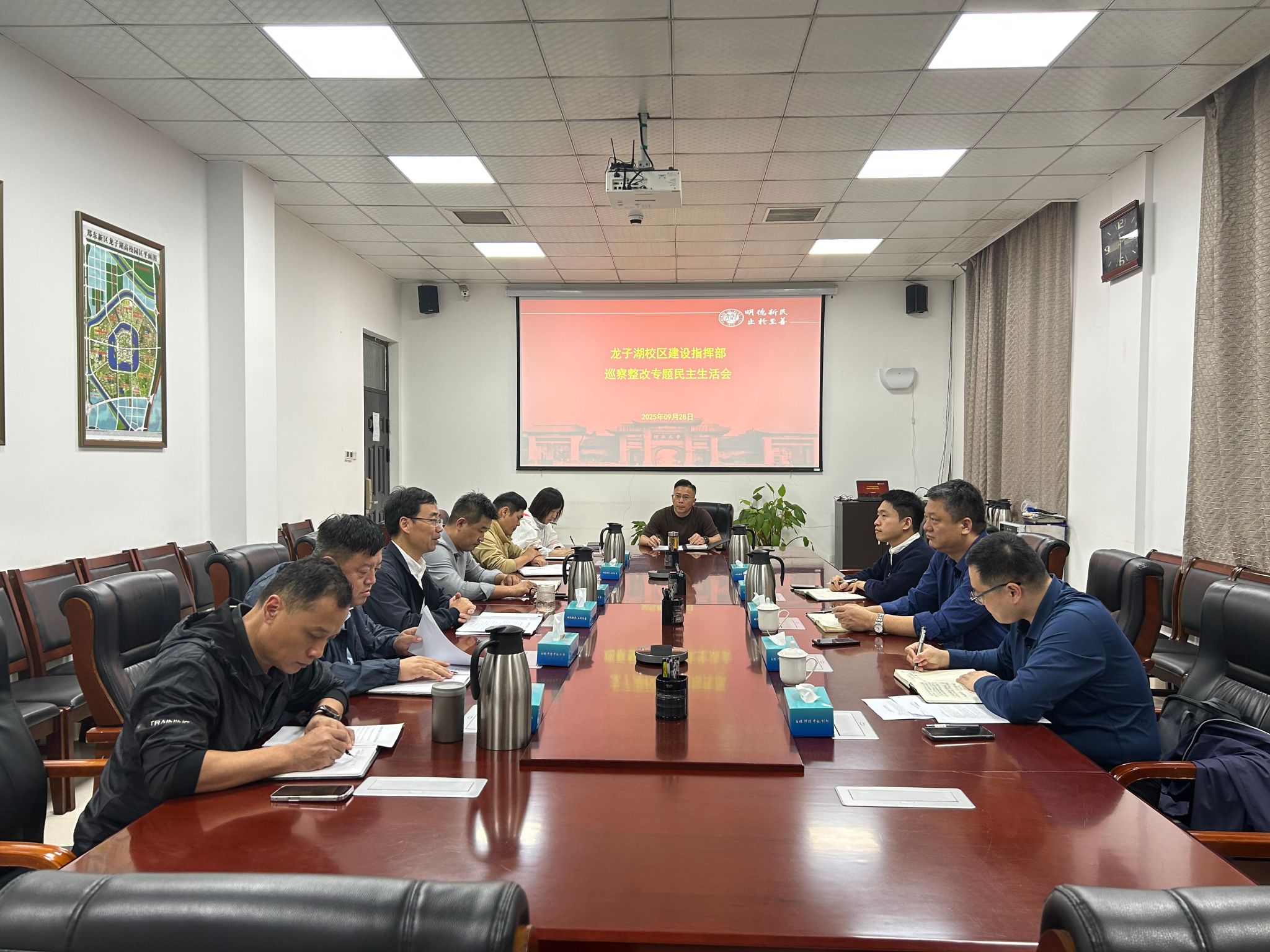 根据校党委巡察整改工作要求,9月28日,龙子湖校区建设指挥部党支部召开巡察整改专题民主生活会。学校正处级纪检监察员李贵仓、副处级巡察专员唐胜、党委组织部王煜皓到会指导。指挥部班子全体成员参加,会议由副指挥长王波同志主持。