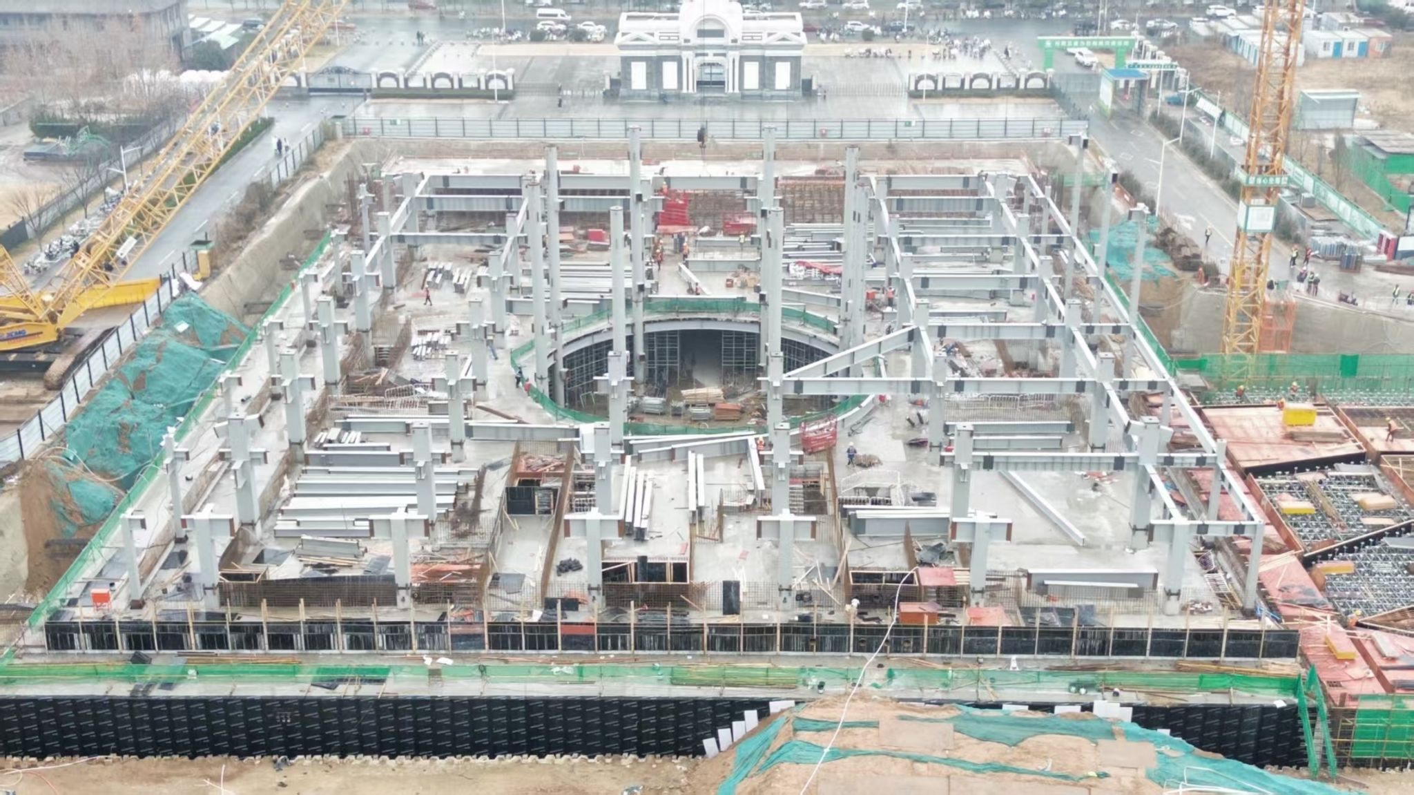 主楼一层钢柱安装完成